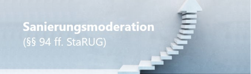 Ein Teil des neuen Restrukturierungsgesetzes ist die Sanierungsmoderation, §§ 94 - 100 StaRUG. Diese ist dem Kernverfahren, dem sogenannten Stabilisierungs- und Restrukturierungsrahmen, vorgelagert und darauf gerichtet, Sanierungskonflikte zwischen Schuldner und Gläubigern aufzulösen und frühzeitig eine einvernehmliche Sanierungslösung zu erreichen. Auf Antrag des Schuldners bestellt das Restrukturierungsgericht dazu eine geeignete, geschäftskundige und von den Gläubigern und dem Schuldner unabhängige natürliche Person zum Sanierungsmoderator. Die Bestellung des Sanierungsmoderators wird nicht öffentlich bekannt gemacht, das Unternehmen kann seine Restrukturierung daher eigenverantwortlich und abseits der Öffentlichkeit mit Unterstützung des Moderators selbst durchführen.